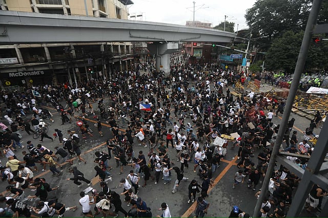 The Philippine National Police (PNP) said a group of about 400 demonstrators gathered in Mendiola when some individuals began throwing stones and Molotov cocktails at riot police and set fires.