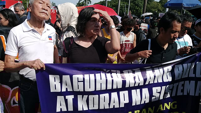 Delegations from state universities chanted, “Iskolar ng Bayan, ngayon ay lumalaban,” a refrain heard since the 1970s yet renewed in urgency amid allegations of corruption involving government officials, including young engineers in the Department of Public Works and Highways (DPWH). The general sentiment at the march and program was to cut off corruption perpetrated by those in power — money that protesters say should go to the poor, including access to the administration’s P20-per-kilo rice.