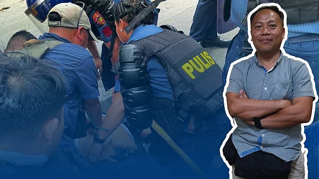 When they reached Ayala Bridge, their path was blocked by a barricade of trucks and a container van. The air grew thick with the threat of violence. Sensing the shift, Lozano moved behind the police line, camera at the ready.