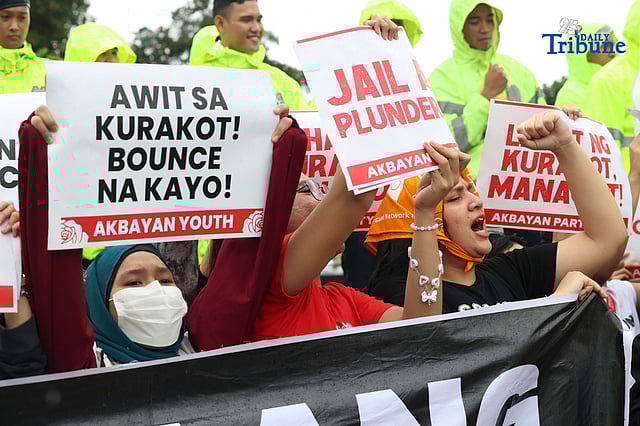 (October 03 2025) Akbayan Party, Akbayan Youth, the Student Council Alliance of the Philippines (SCAP), Youth Against Kurakot (YAK!), and Tindig Pilipinas, stage a Noise Barrage with theme “Magingay sa Edsa” by using horns, whistles and voices, to demand accountability, transparency and genuine reform, on Friday October 3, 2025 at the People Power Monument in Quezon City. Photo/Analy Labor