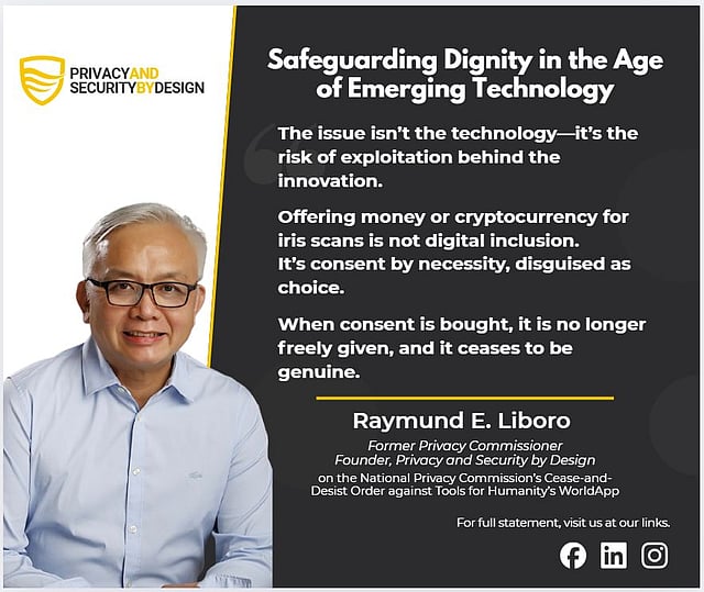 The NPC warned that once collected, biometric data such as iris scans could be used in unpredictable ways — from surveillance to discrimination — and questioned whether Filipinos should normalize turning human eyes into economic assets.