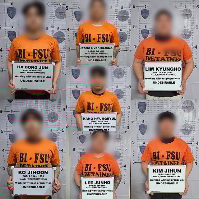 Operatives from the BI-Fugitive Search Unit (BI-FSU) arrested seven Korean nationals on 13 October after discovering a makeshift betting hub during a joint operation with South Korean authorities, the Philippine Air Force, and the Clark Development Corporation.
