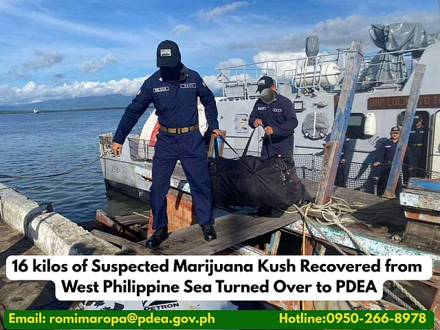 Some 16 kilograms of high-grade marijuana kush was recovered in an operation conducted off the West Philippine Sea, officials confirmed on 20 October 2025.