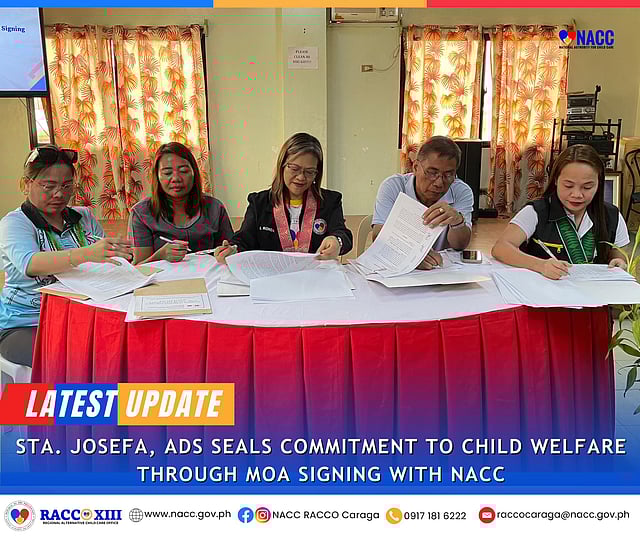 Signed on 21 October, the partnership agreement includes the Sta. Josefa LGU among six nationwide that will formally work with NACC in developing foster care and adoption systems ensuring that vulnerable children are placed in safe, family-based environments.