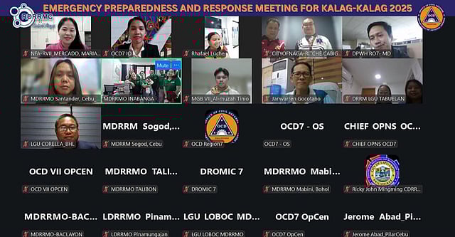 Disaster response agencies under the Regional Disaster Risk Reduction and Management Council (RDRRMC), along with local DRRM offices from Cebu and Bohol, convene for an Emergency Preparedness and Response Coordination Meeting via teleconference on 28 October. Office of the Civil Defense 6