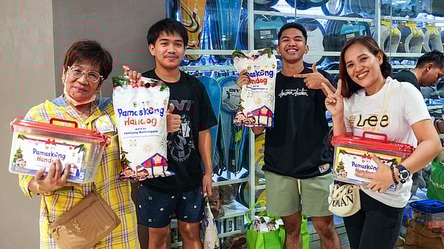Each Pamaskong Handog package includes holiday staples such as spaghetti sauce and pasta, elbow macaroni, champorado and arroz caldo mixes, canned goods—including corned beef, corned tuna, and meat loaf—fruit cocktail, and three kilos of rice.