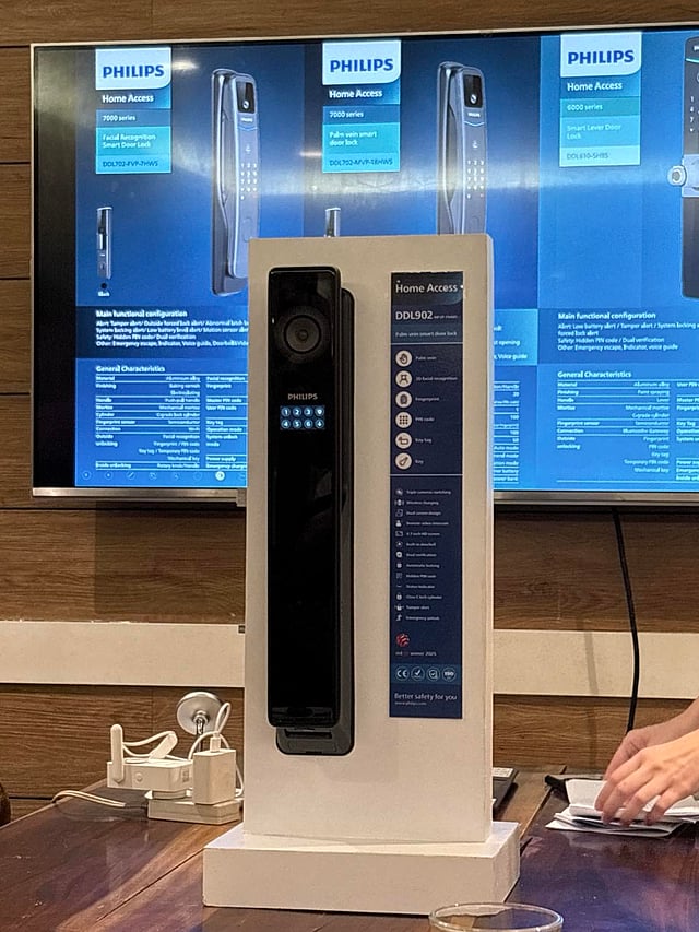 Philips Home Access is set to launch its most advanced smart lock model, the DL902-MFVP-11HWS 9000, equipped with a 360-degree vision guardian powered by three security cameras, as well as palm vein and face recognition for seamless entry.