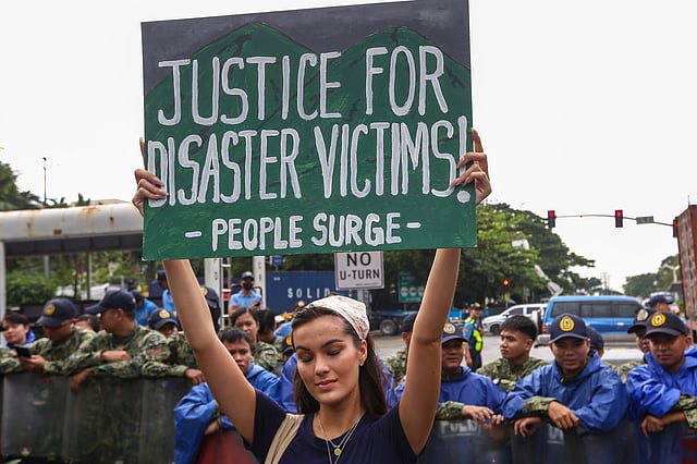 Miss Earth Water 2024 Bea Millan-Windorski adds her voice for climate justice in a protest action at Kalaw Avenue in Manila on 15 November 2025. The protest dubbed the Global Day of Action coincides with the COP 30 climate negotiations that are currently happening in Brazil.