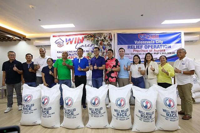 Senator Sherwin Gatchalian turned over P1.9 million in cash assistance and P2.193 million worth of rice to victims of Typhoon Uwan in Aurora Province during a turnover ceremony at the Capitol Building Function Hall in Baler on 22 November 2025.