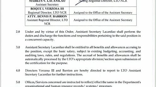 The DoTr order also designated LTO Assistant Secretary Markus Lacanilao as acting LTO-NCR Regional Director.