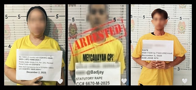 In Bulacan, police arrested “Alyas Badjay,” 26, the region’s Top 5 Most Wanted Person, during a December 1 operation in Barangay Saluysoy, Meycauayan City. The suspect faced a no-bail statutory rape charge (Criminal Case No. 6670-M-2025) under a warrant issued by Malolos RTC Branch 79.