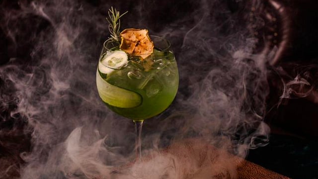 Sheraton Manila Hotel at Newport World Resorts brews a playful punch with the Swamp Bloom at P425. A bright green cocktail that blends gin with Zen green tea and white pepper syrup, the drink looks like it came straight out of Shrek’s backyard pond, but tastes refreshing and surprisingly classy.