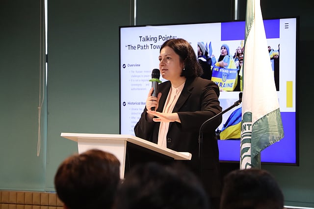 Ukraine’s first envoy to Manila Yuliia Fediv warned future Lasallian diplomats that peace won’t come from surrender, stressing that only resistance can defend democracy, protect civilians, and stop Russia’s advancing war machine.
