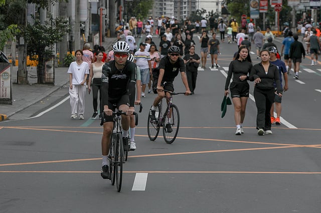 Joggers, bikers, and walkers gathered at Tomas Morato, Quezon City for "Car-free Sundays," an initiative of local government in promoting healthy living on Sunday, 7 December, 2025. The weekly exercise activity has been on going for a year.| Aram Lascano