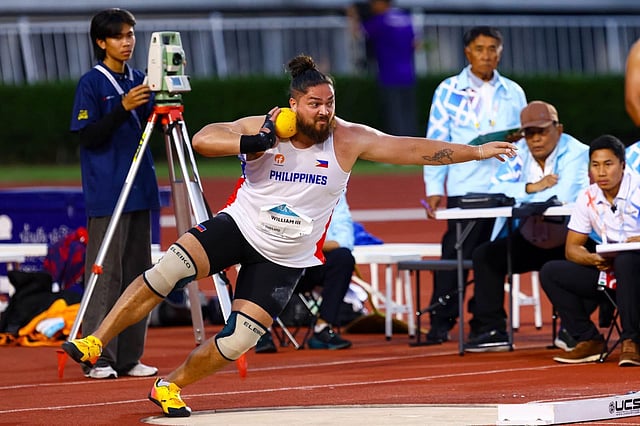 "If you spin it on the ground, you can see the central... I don't know. What do you call it? There's no balance in it. It won't even stay still when you balance it. And they're brand new. Like, who's going to throw with a brand new shot put? Just the fact that they're talking to me between every single throw and stopping me in the middle of my throw is dog sh_t. Like, this is the worst SEA Games I've ever been to."