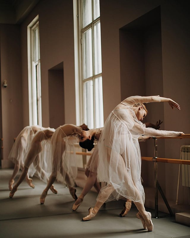 Miss Eleanora turns toward the floor-to-ceiling mirrors. She stares at her slim legs, imagining them moving freely, imagining her entire body dancing. Jumping, kicking, extending. As if the accident had never happened. Her arms move flawlessly, but the rest of her remains imprisoned in memory.