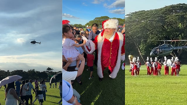 That moment arrived when a Bell 505 helicopter began circling above the polo field, its low hum cutting through the chatter below. Heads tilted skyward as children and families rushed toward the center, eyes wide with wonder. Ron Barretto Ciprez's Santa Claus made his entrance not by sleigh nor reindeer, but by whirring rotor blades, an arrival that felt part Christmas fantasy, part action-movie spectacle.