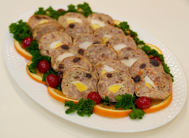 “My nanay Rose would prepare this embotido a week or two before Christmas. The flavor and texture improve overtime in the fridge or freezer. Come Noche Buena, these embotidos are uniformly sliced, reheated in the oven or pan fried in butter. They are then lusciously served with warm pan de sal, queso de bola and sometimes steamed rice and catsup.”