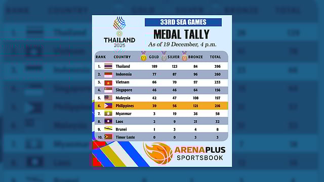 33rd SEA Games Medal Tally as of December 19, 2025