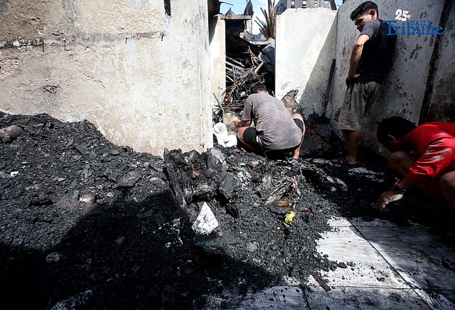 Residents affected by a fifth-alarm fire at Riverside Extension, San Roque Street, Barangay Commonwealth, Quezon City were seen on Monday, December 29, 2025, salvaging reusable belongings from the ruins of their homes. The blaze, which broke out Sunday night, December 28, affected more than 50 houses and displaced around 100 families, or about 500 individuals. Photo by Analy Labor for DAILY TRIBUNE