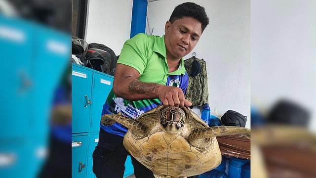Earlier, on 4 January, Amarillo also accidentally snagged another green sea turtle in his fishing net in the waters of Basey, Samar.