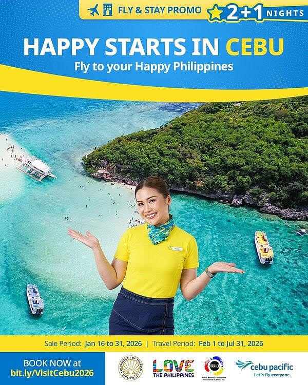 Cebu Pacific has launched a limited-time international travel promotion in partnership with the Department of Tourism and the Hotel, Resort and Restaurant Association of Cebu Inc., offering discounted airfares and hotel packages under its “Happy Starts in Cebu” campaign.