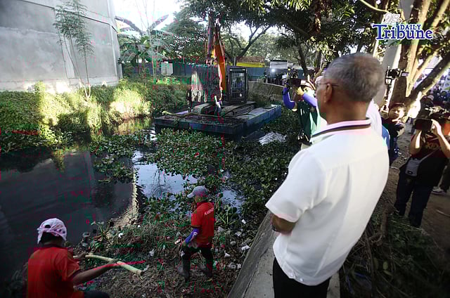 (January 22 2026) MMDA General Manager Usec. Nicolas Torre III with Valenzuela Mayor Wes Gatchalian personally oversee the removing of water hyacinth, garbage and silt to help mitigate flooding at the conducted Bayanihan sa Estero at the Kalabingkoho River in Barangay Malanday, Valenzuela City. Photo/Analy Labor