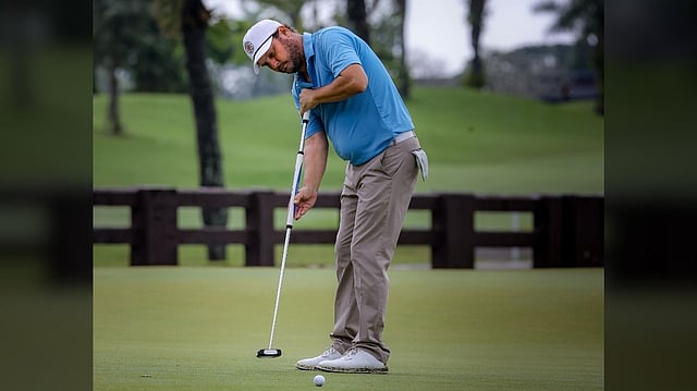 The Dutchman stayed composed as conditions toughened, navigating heat and intermittent rain while holding firm on TCC’s unforgiving back nine.