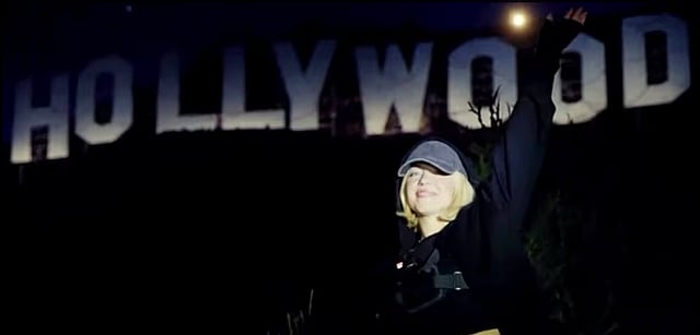 She was then seen climbing the 445-foot-tall Hollywood sign to hang the bras.
