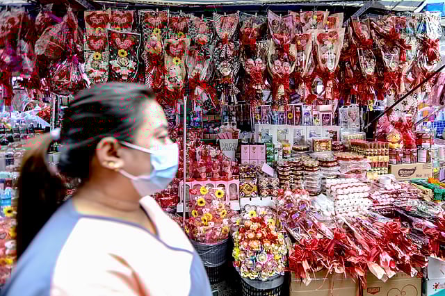 Divisoria bleeds red this season as various gifts for valentines, including heart shaped greetings, stuffed toys, chocolates, and flowers, are seen sold in retail and bulk.| Aram Lascano