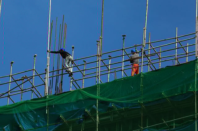 DANGEROUS HEIGHTS. Construction workers are seen securing scaffolding without safety harnesses on a high-rise building along Laong Laan Road in Manila on Thursday, 05 February 2026. This practice appears to disregard the safety protocols mandated under Republic Act 11058, which ensures a safe and healthful workplace for all employees and strictly requires the use of Personal Protective Equipment (PPE) in high-risk environments.