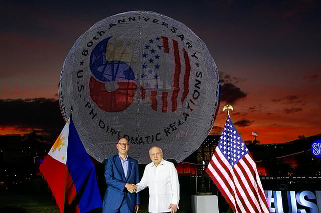 CELEBRATING 80 YEARS OF PARTNERSHIP. U.S. Embassy Chargé d’Affaires a. i. Y. Robert Ewing and Philippine Ambassador to the U.S. Jose Manuel Romualdez officially unveil the 80th-anniversary logo of U.S.-Philippines diplomatic relations at the SM Mall of Asia Globe on Thursday, 05 February 2026.