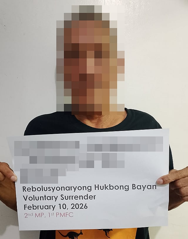 A former member of a communist terrorist group (CTG) surrendered to authorities at the Bulacan 1st Provincial Mobile Force Company in the City of Malolos, Bulacan on February 10, 2026.