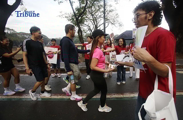 The AIDS Healthcare Foundation, in partnership with youth group PANTAY, handed out free condoms and roses to early morning joggers at University of the Philippines Diliman on Saturday, Feb. 14, 2026.