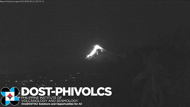 Earlier in the day, PHIVOLCS released time-lapse footage through its social media platforms, showing what the agency described as lava effusion from Mayon’s summit crater at 7:21 p.m. on Friday, 13 February 2026.