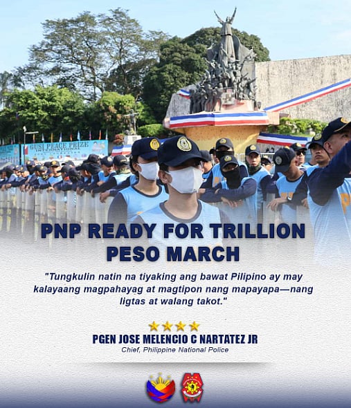 Chief PNP Police General Jose Melencio C. Nartatez Jr. said the deployment aims to support crowd management, traffic control, and emergency response while ensuring public safety. He encouraged participants to cooperate with authorities and follow safety protocols.