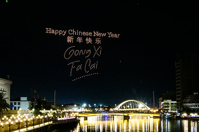 The City of Manila welcomes the "Year of the Horse" with a synchronized drone and fireworks display over the Binondo-Intramuros Bridge on Tuesday, 17 February 2026.