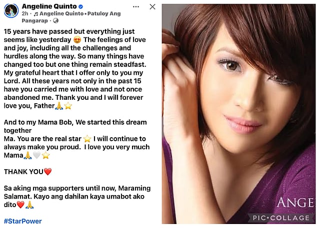 Fifteen years after a life-changing victory opened the doors of her career, Angeline Quinto paused not to count achievements — but to give thanks.