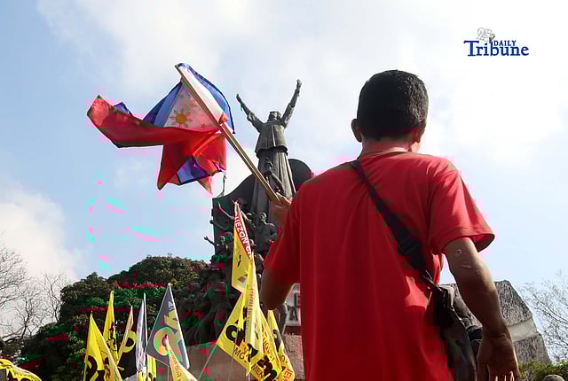 (February 25 2026) A young Man waving Philippine flag at the People Power Monument, during the 40th people power anniversary celebration along Edsa in Quezon City, on Wednesday February 25 2026. Photo/Analy Labor ANALY LABOR