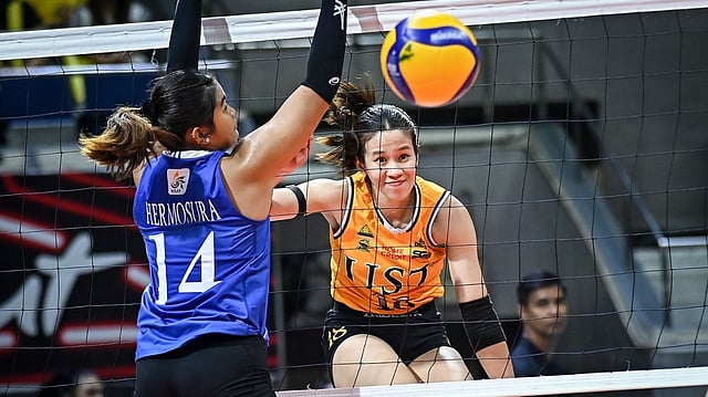 UST used an 8-0 run to shatter an 8-8 tie in the tight third set before cruising into their first under returning head coach Shaq delos Santos.