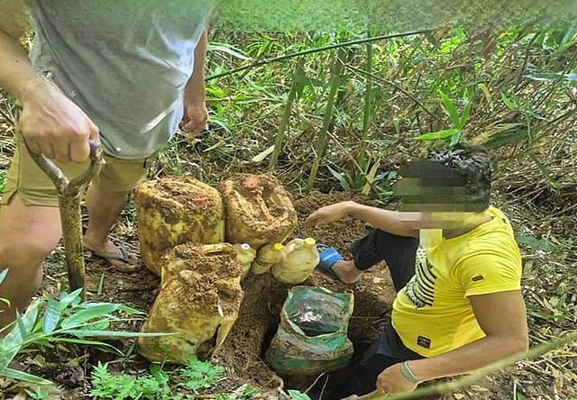 Recovered items included two containers containing approximately 25 kilograms of rice each; two gallon containers with about 10 kilograms of rice each; two 1.5-liter containers holding roughly 1.5 kilograms of rice each; and another water container containing around 3 kilograms of rice.