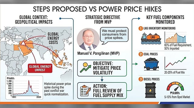 With power bills already elevated, Meralco chairperson Manuel V. Pangilinan has directed the utility to conduct a comprehensive review of its fuel supply mix to shield consumers from sudden rate spikes.