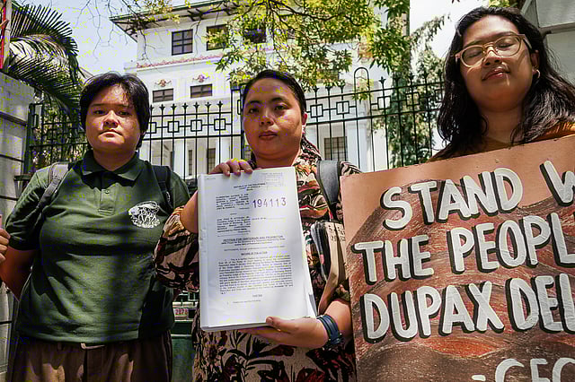 Atty. Kathy Panguban of the National Union of Peoples’ Lawyers, along with anti-mining advocates from Kalikasan People’s Network for the Environment, files a petition for certiorari and prohibition before the Court of Appeals in Manila on Friday, 6 March 2026, challenging British mining company Woggle Corporation’s writ of preliminary injunction as the latter continue to receive backlash from the community and government officials over their mining activity in Dupax del Norte, Nueva Viscaya. JohnCarloMagallon