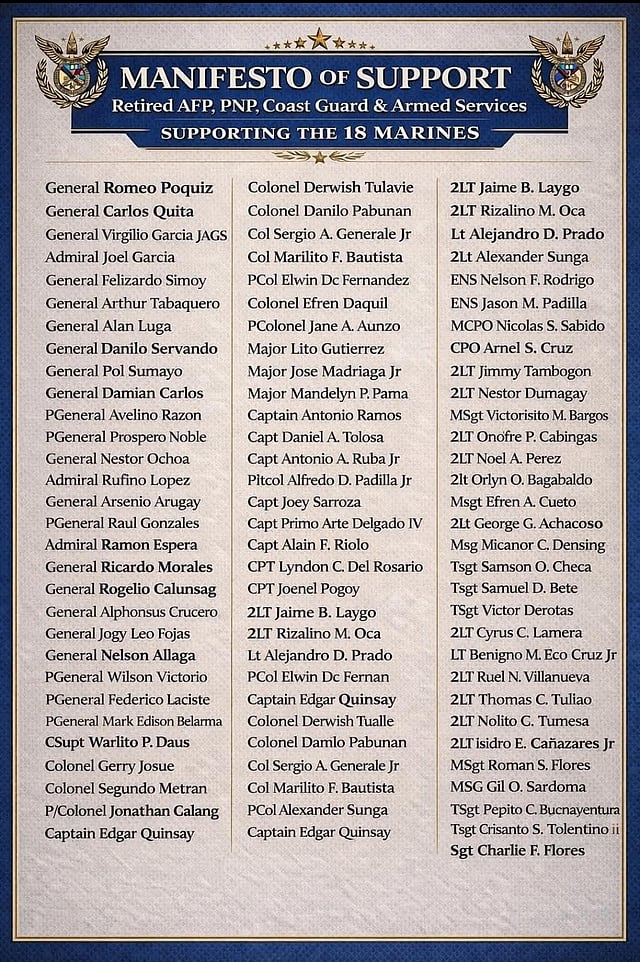 More than 200 retired personnel from the Armed Forces of the Philippines, Philippine National Police, Philippine Coast Guard, Bureau of Jail Management and Penology and Bureau of Fire Protection have reportedly signed the manifesto supporting the whistleblowers.
