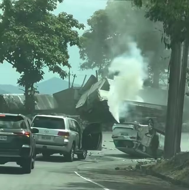 The crash caused heavy traffic along Marcos Highway as responders cleared the wreckage and debris.