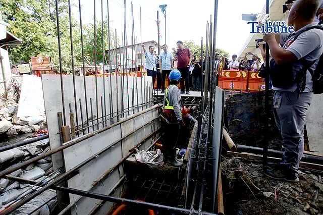 (March 10 2026) Department of Public Works and Highways (DPWH) Secretary Vince Dizon, together with Valenzuela City Mayor Wes Gatchalian, inspected the ongoing drainage at Veinte Reales Bridge, along T. Santiago Street near MacArthur Highway on Tuesday, March 10, 2026, to mitigate flooding in the area they put double box culvert to address flooding in the area, which worsened following construction activities for the Department of Transportation’s North-South Commuter Railway that disrupted existing drainage systems and catch basins. Photo/Analy Labor