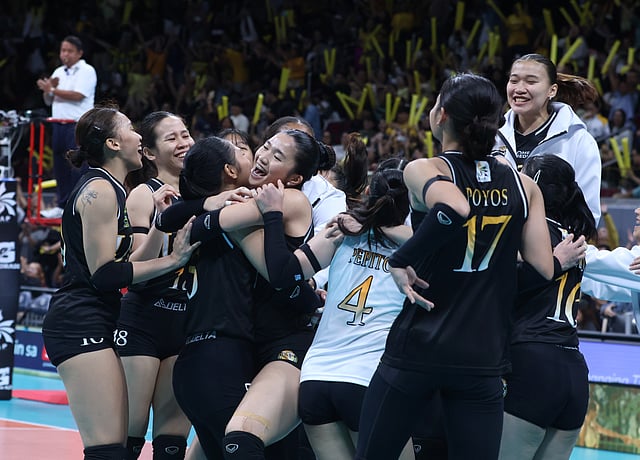 UE saved a match point on a Blue Eagles error before Ateneo sealed the win with a successful antenna touch challenge on Ash Canete’s attack.