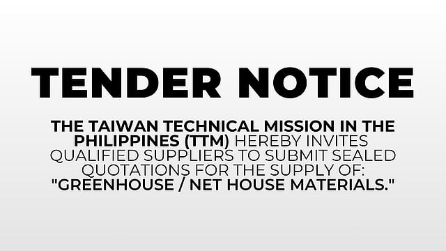 TENDER NOTICE: Taiwan Technical Mission in the Philippines (TTM)