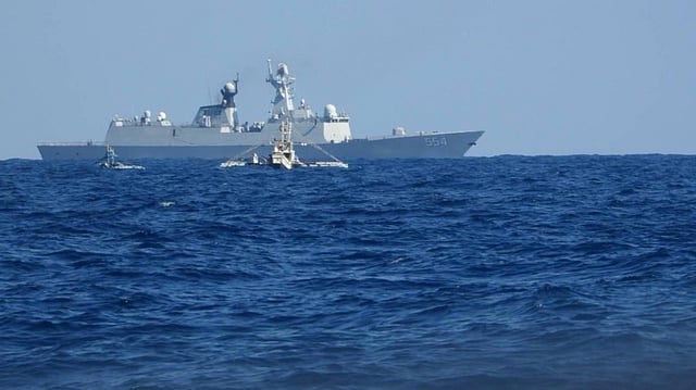 The surveillance flight confirmed the presence of 10 Chinese vessels — five coast guard ships, three warships, and two maritime militia vessels.