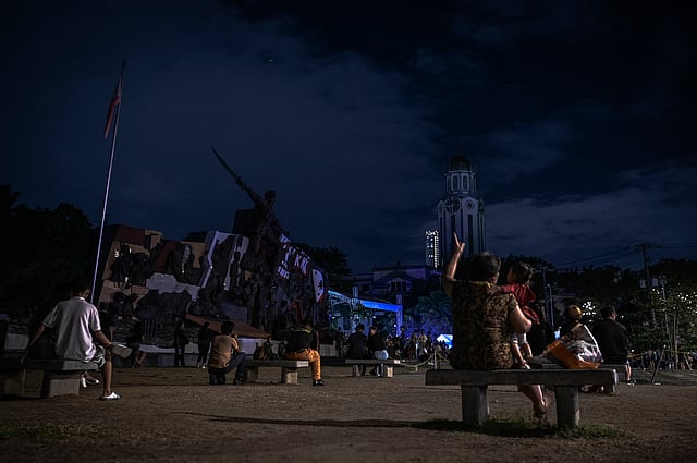The Manila Clock Tower is pictured after its lights are turned off to mark the Earth Hour environmental campaign in Manila on March 23, 2024. JAM STA ROSA / AFP
